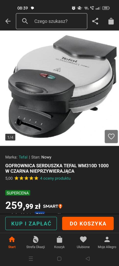 Grajewo ogłoszenia: Sprzedam gofrownice Tefal moc 1000W w kształcie serduszek. Druga...